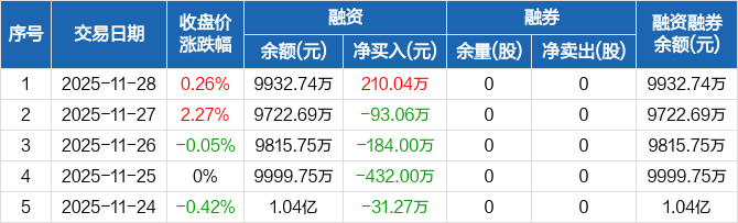 菲沃泰:融资净买入210.04万元,融资余额9932.74万元(11-28)