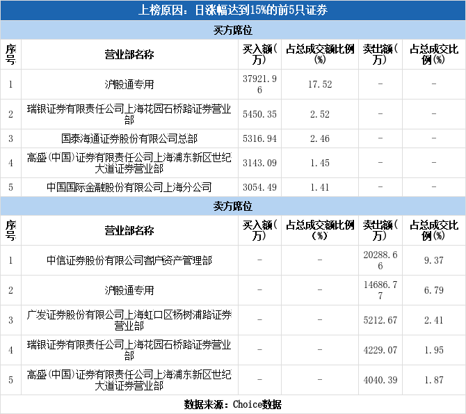 沪股通现身龙虎榜,伟测科技上涨15.22%(10-27)