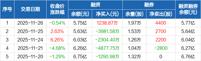 伟测科技:融资净买入1238.87万元,融资余额5.75亿元(11-26)