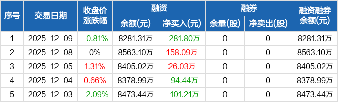 盟科药业:融资净偿还281.8万元,融资余额8281.31万元(12-09)