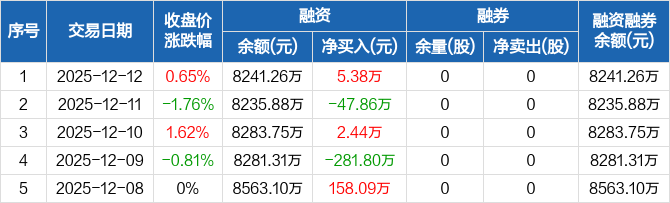 盟科药业:融资净买入5.38万元,融资余额8241.26万元(12-12)