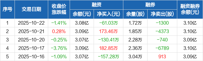 国博电子:融资净偿还61.03万元,融资余额3.08亿元(10-22)