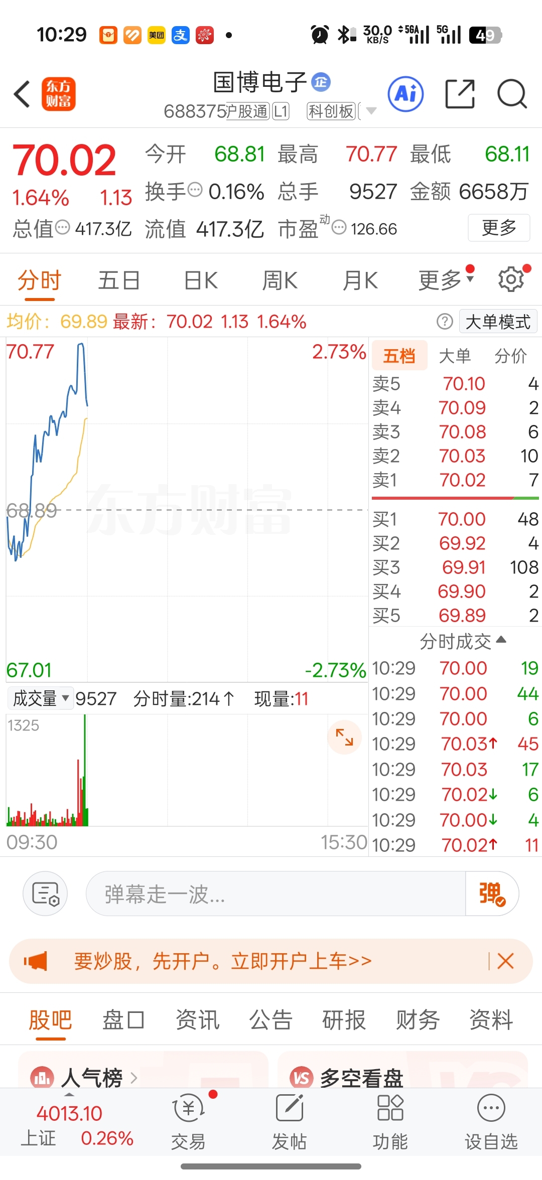 $国博电子(SH688375)$ 跌的真快,涨起来就有人卖