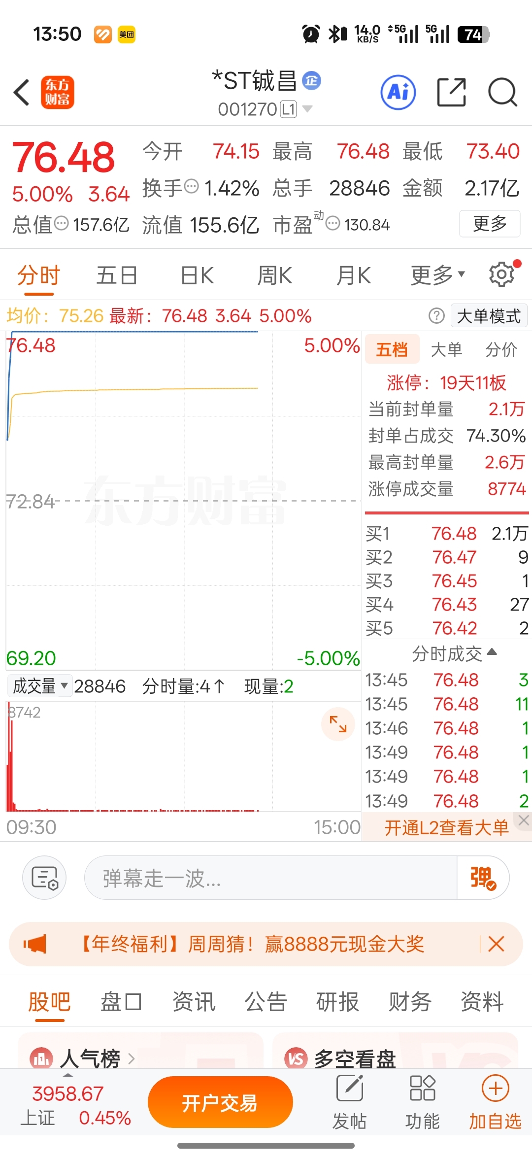 $国博电子(SH688375)$ $*ST铖昌(SZ001270)$ 博子,st马上追上你了