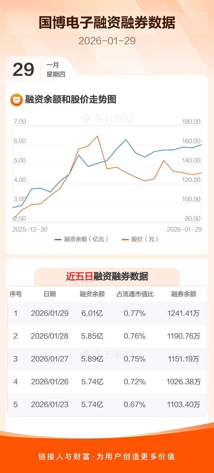 交易所最新数据显示,国博电子于2026年1月29日获融资买入1.20亿元,融资偿还1.04亿元,当日融资净买入1587.41万元。目前,该股融资余额6.01亿,占流通市值比例为0.77%。