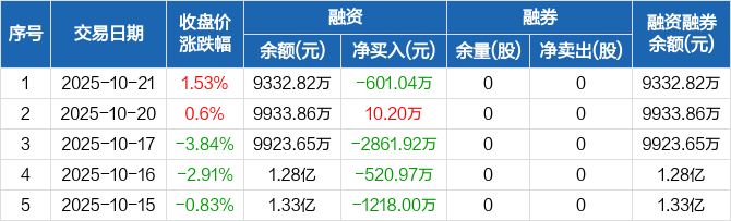 美埃科技:融资净偿还601.04万元,融资余额9332.82万元(10-21)