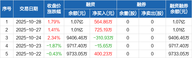 美埃科技:融资净买入564.86万元,融资余额1.07亿元(10-28)