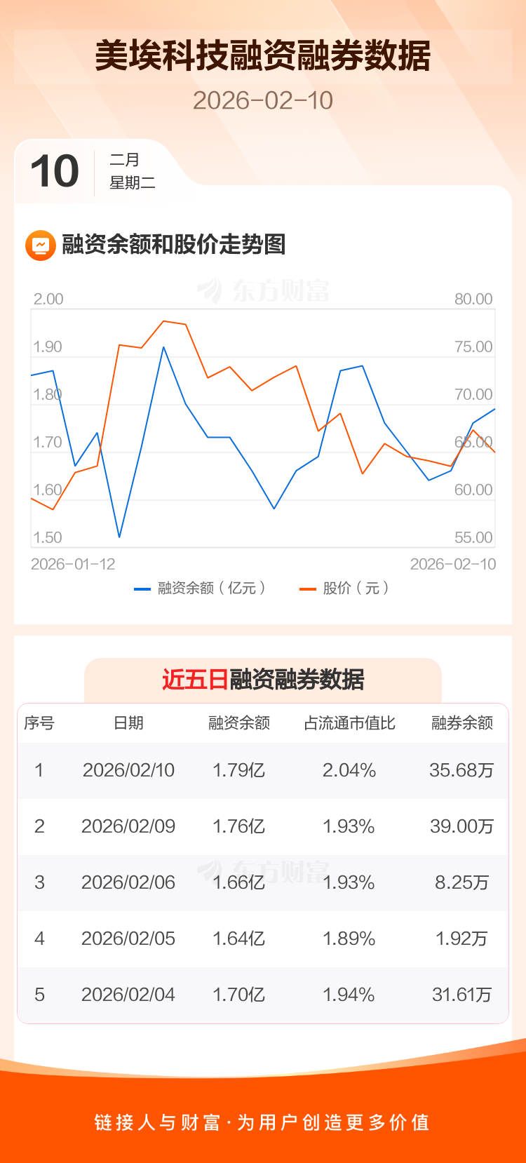 交易所最新数据显示,美埃科技于2026年2月10日获融资买入1708.21万元,融资偿还1414.03万元,当日融资净买入294.18万元。目前,该股融资余额1.79亿,占流通市值比例为2.04%。