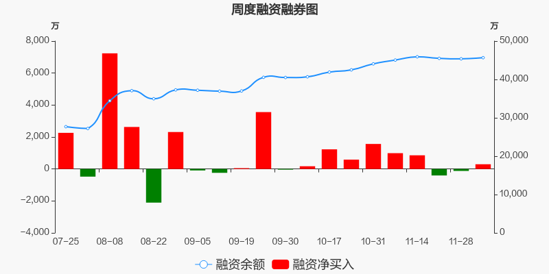 迪威尔本周(2025/12/01-2025/12/05)累计涨幅达1.01%,截至12月5日最新股价报收37.14元。从增量上来看,12月1日至12月5日融资买入交易规模2859.3万元,融资偿还规模2563.88万元,期内融资净买入295.42万元。从存量上来看,截止12月7日,迪威尔融资融券余额4.57亿元,其中融资余额规模4.57亿元,融券余额规模0元。