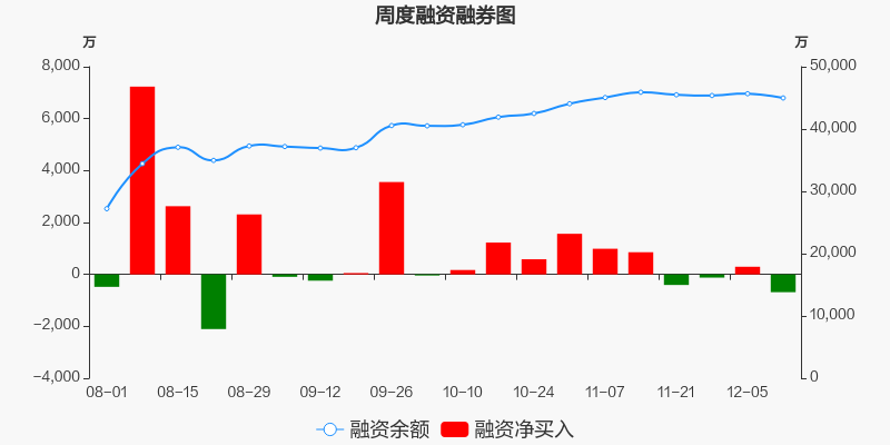 迪威尔本周(2025/12/08-2025/12/12)累计跌幅达0.92%,截至12月12日最新股价报收36.80元。从增量上来看,12月8日至12月12日融资买入交易规模3445.46万元,融资偿还规模4129.22万元,期内融资净偿还683.76万元。从存量上来看,截止12月14日,迪威尔融资融券余额4.5亿元,其中融资余额规模4.5亿元,融券余额规模0元。