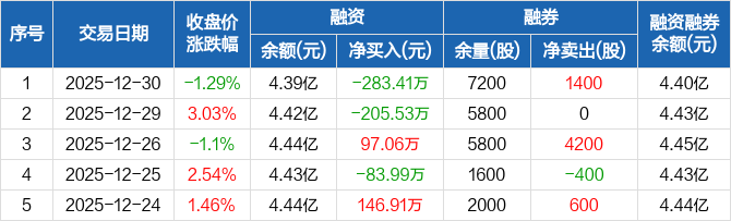 迪威尔:融资净偿还283.41万元,融资余额4.39亿元(12-30)