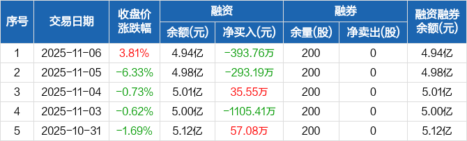 奥来德:融资净偿还393.76万元,融资余额4.94亿元(11-06)