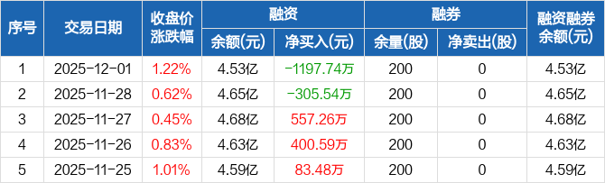 奥来德:融资净偿还1197.74万元,融资余额4.53亿元(12-01)