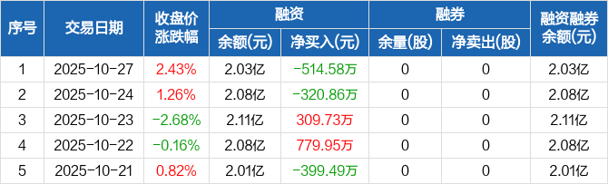 华光新材:融资净偿还514.58万元,融资余额2.03亿元(10-27)