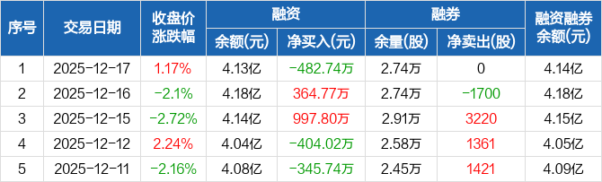 中微半导:融资净偿还482.74万元,融资余额4.13亿元(12-17)
