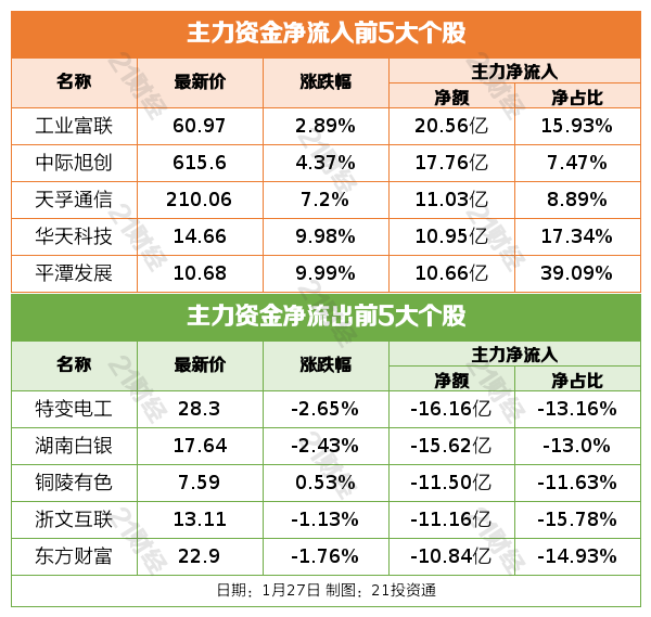 1月27日,市场探底回升,三大指数集体翻红,沪指涨0.18%,深成指涨0.09%,创业板指涨0.71%。沪深两市成交额2.89万亿,较上一个交易日缩量3532亿。盘面上,全市场超3400只个股下跌。从板块来看,芯片产业链持续拉升,贵金属概念延续强势,CPO概念表现活跃,太空光伏概念持续回升。超硬材料概念走强。下跌方面,煤炭、电池等板块跌幅居前。电池产业链集体下挫。