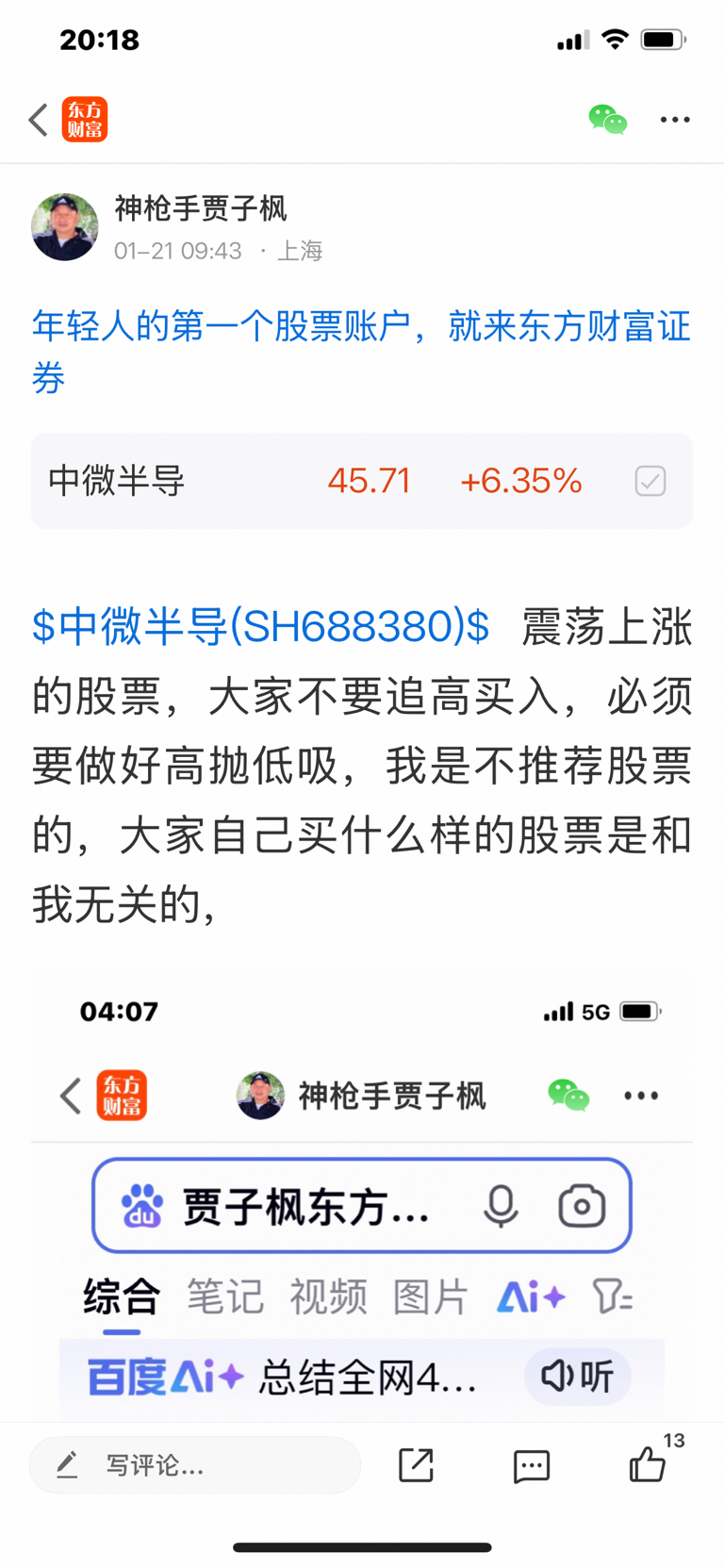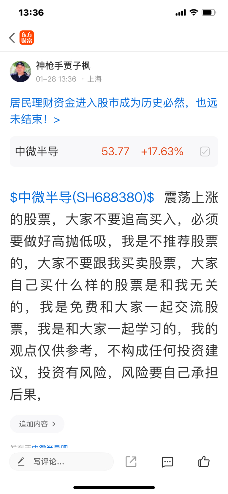 $中微半导(SH688380)$ 大家不论看好什么样的股票,一定不要追高买入,必须要做好高抛低吸,我是不推荐股票的,大家不要追我买卖股票,大家自己买什么样的股票是和我无关的,因为我是免费和大家一起交流股票,我是和大家一起学习的,我的观点仅供参考,投资有风险,风险要自己承担后果,