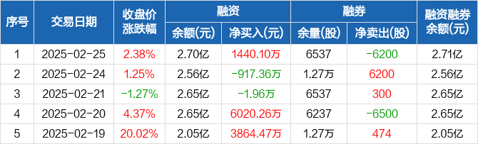 帝奥微:融资余额2.7亿元,创历史新高(02-25)