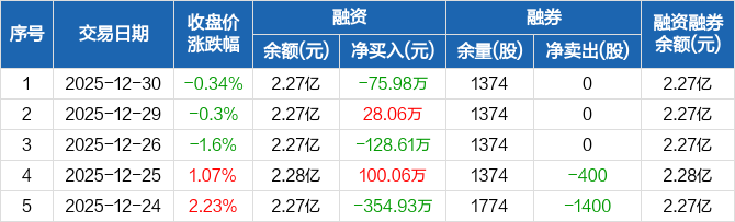 帝奥微:融资净偿还75.98万元,融资余额2.27亿元(12-30)