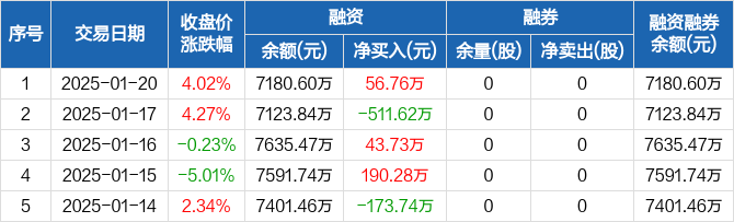 益方生物:融资净买入56.76万元,融资余额7180.6万元(01-20)