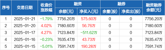 益方生物:融资净买入575.6万元,融资余额7756.2万元(01-21)