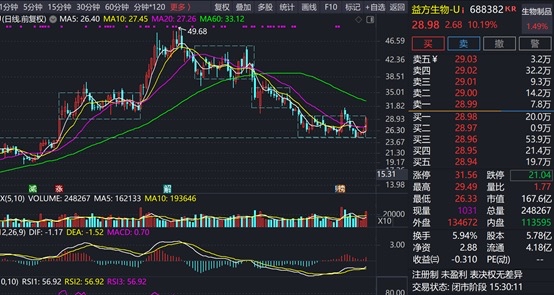 益方生物自8月初开始趋势反转,进入下降趋势中。当前在到达24元支撑位获得支撑后,