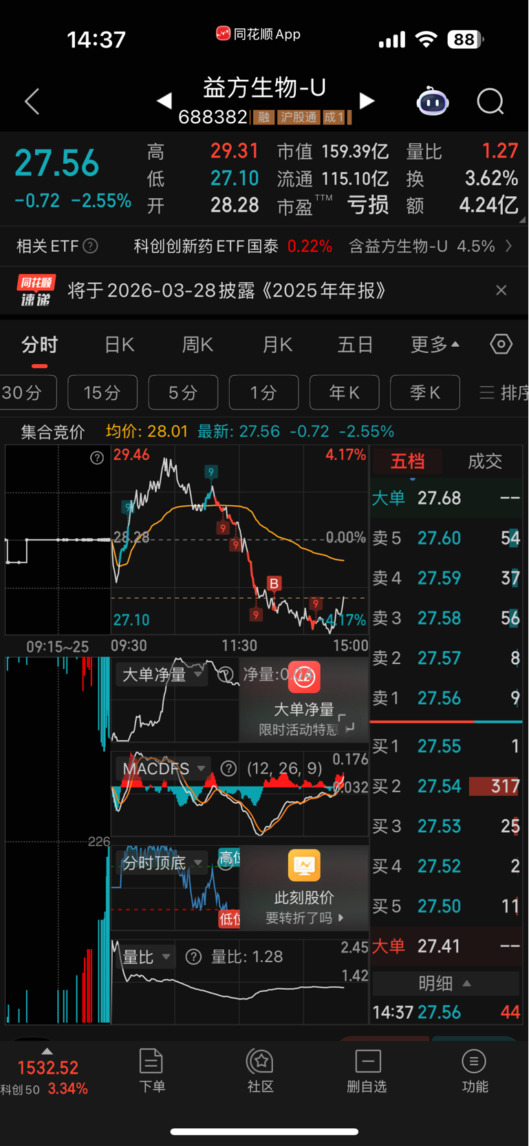 $益方生物-U(SH688382)$ 目前仓位最后一点子弹打出来了