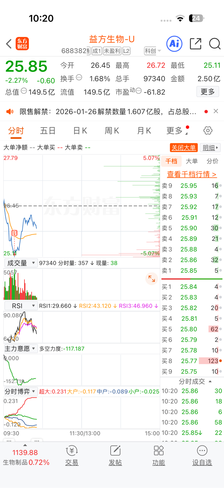 $益方生物-U(SH688382)$ 解禁日适量参与一下