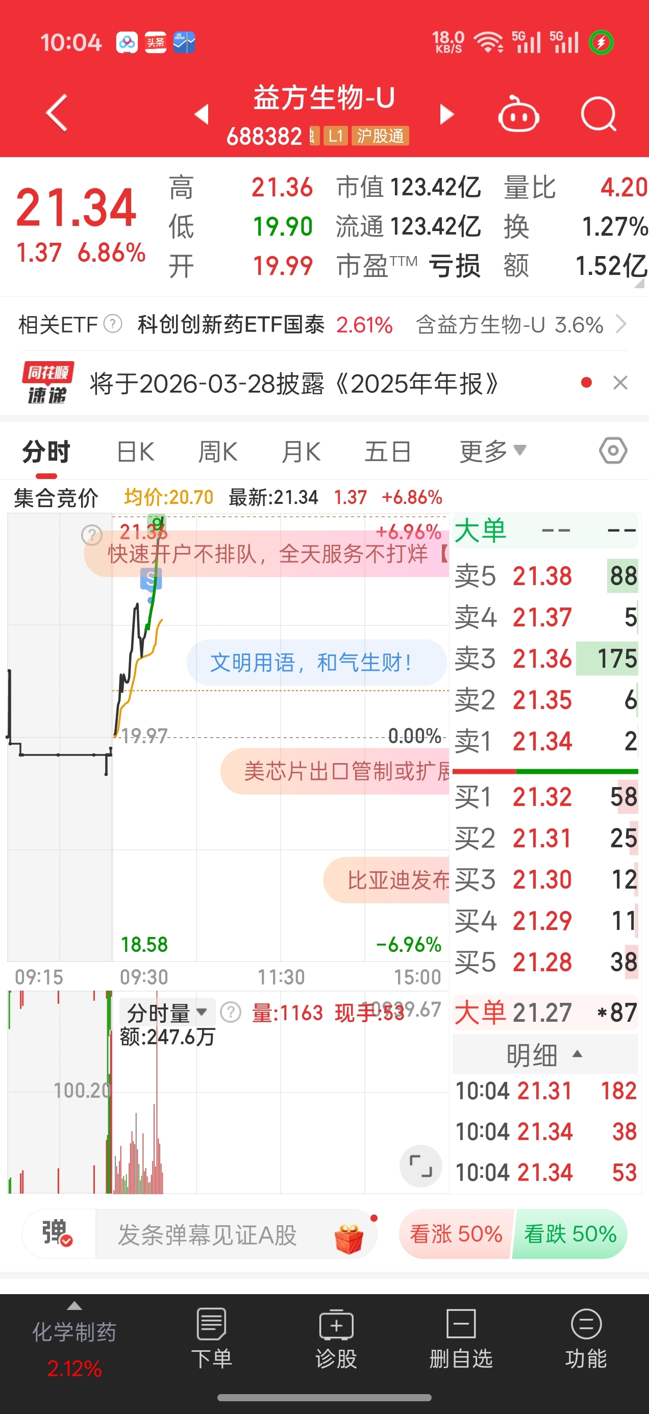 $益方生物-U(SH688382)$ 诶,又卖飞了