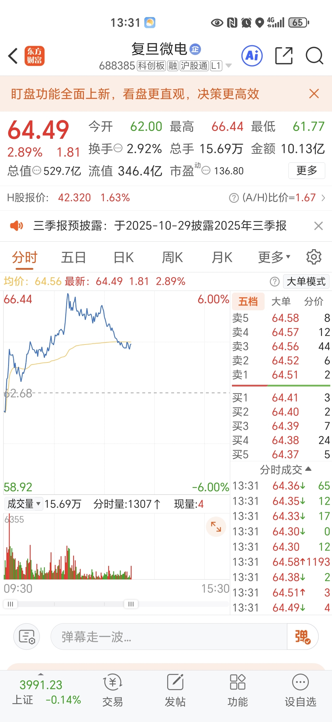 $复旦微电(SH688385)$ 谁买的1193,假酒喝多了?
