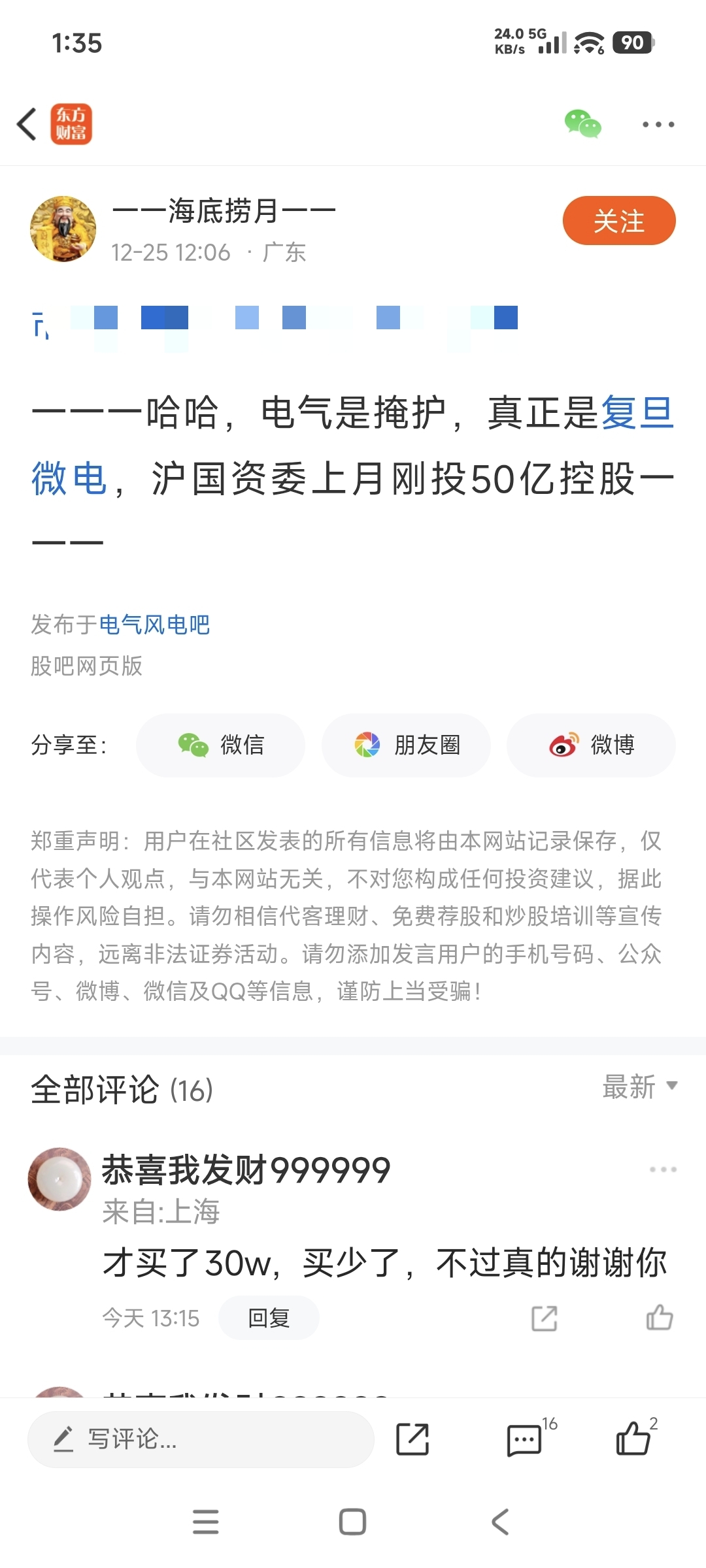 温馨提示: 1.根据《证券法》规定,禁止编造、传播虚假信息或者误导性信息,扰乱证券市场;2.用户在本社区发表的所有资料、言论等仅代表个人观点,与本网站立场无关,不对您构成任何投资建议。用户应基于自己的独立判断,自行决定证券投资并承担相应风险。《东方财富社区管理规定》