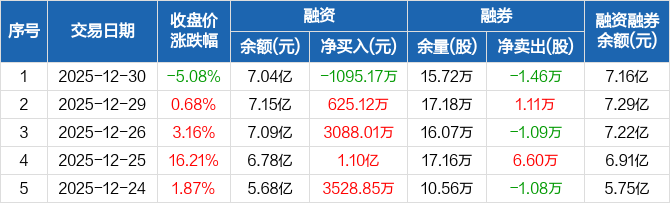 复旦微电:融资净偿还1095.17万元,融资余额7.04亿元(12-30)