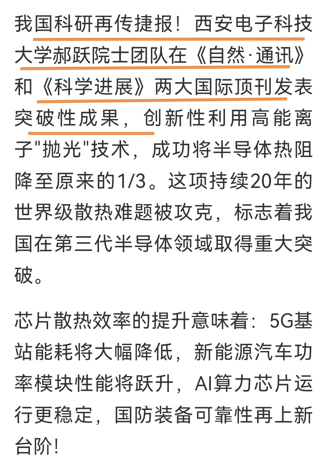重磅利好!西安电子科技大学突破芯片散热世界难题!