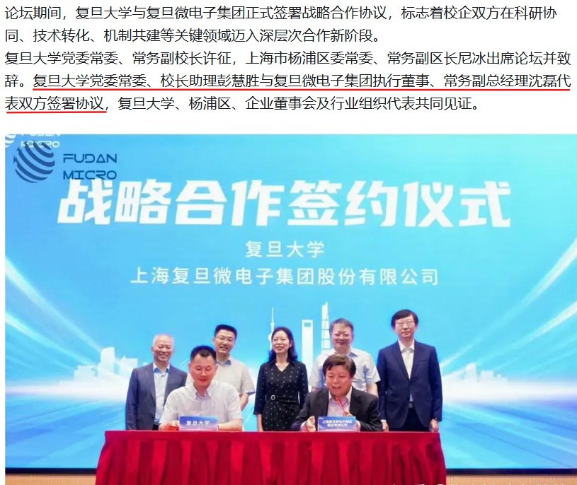 佐证消息:2025年7月,复旦大学代表彭慧胜与复旦微电代表沈磊签署战略合作协议!上图!
