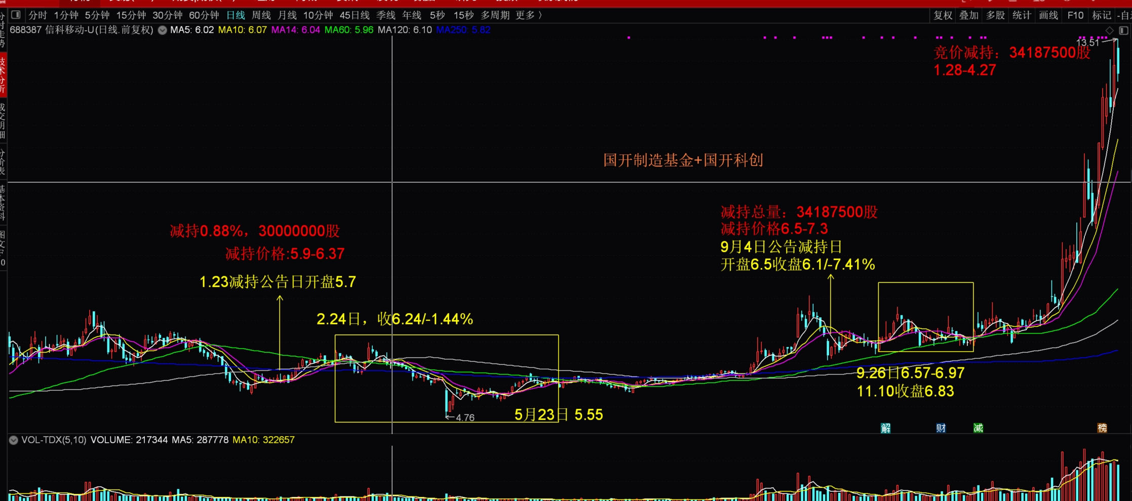 前两次竞价减持,1-3亿日交易量都抗住涨起来了,现在日成交23.5亿...减持4