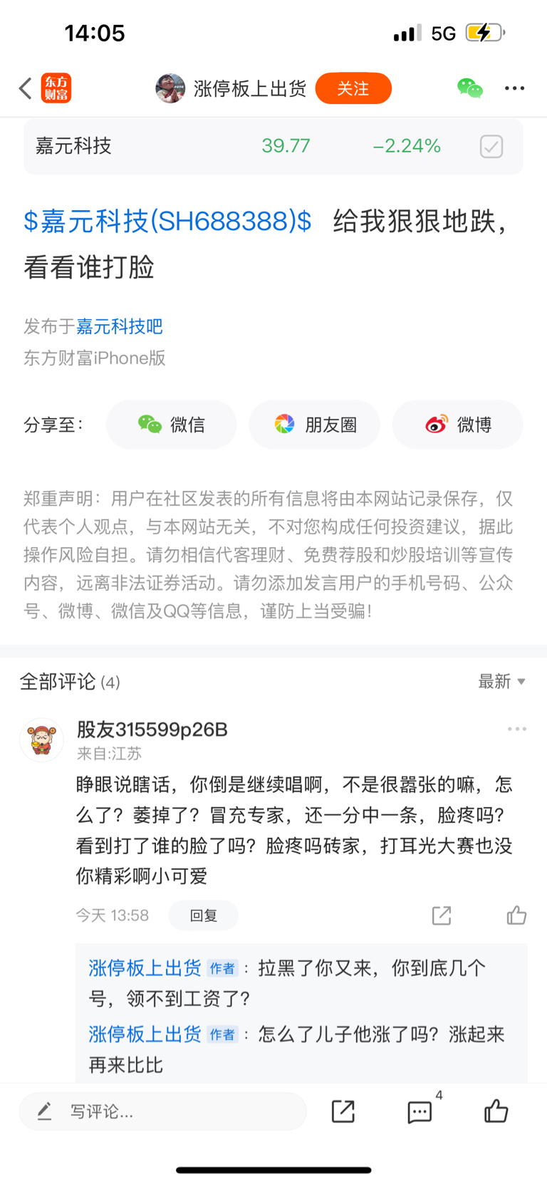 $嘉元科技(SH688388)$ 笑死我了,还说拉黑我我就一个ID还领工资,被害妄想症,满嘴跑火车