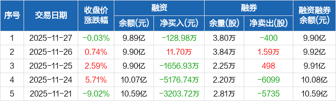 嘉元科技:融资净偿还128.98万元,融资余额9.89亿元(11-27)