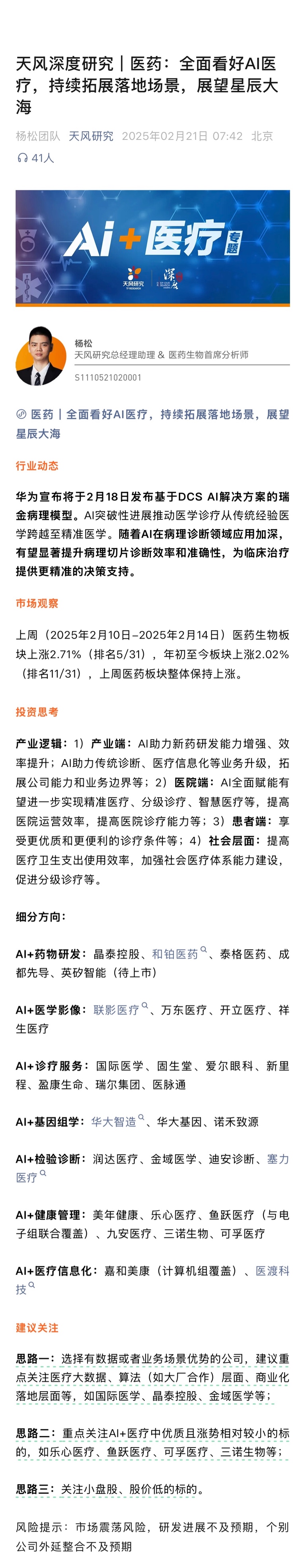 $普门科技(SH688389)$ 天风这么看好未来AI医疗落地,推的标的业绩比普门科技差的多,而且不少亏损,但还涨好多倍也有。 普门这个位置逢低就加点$成都先导(SH688222)$ $华大智造(SH688114)$