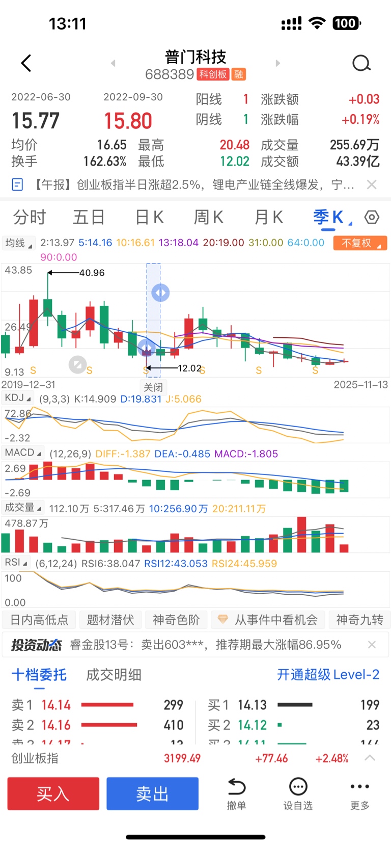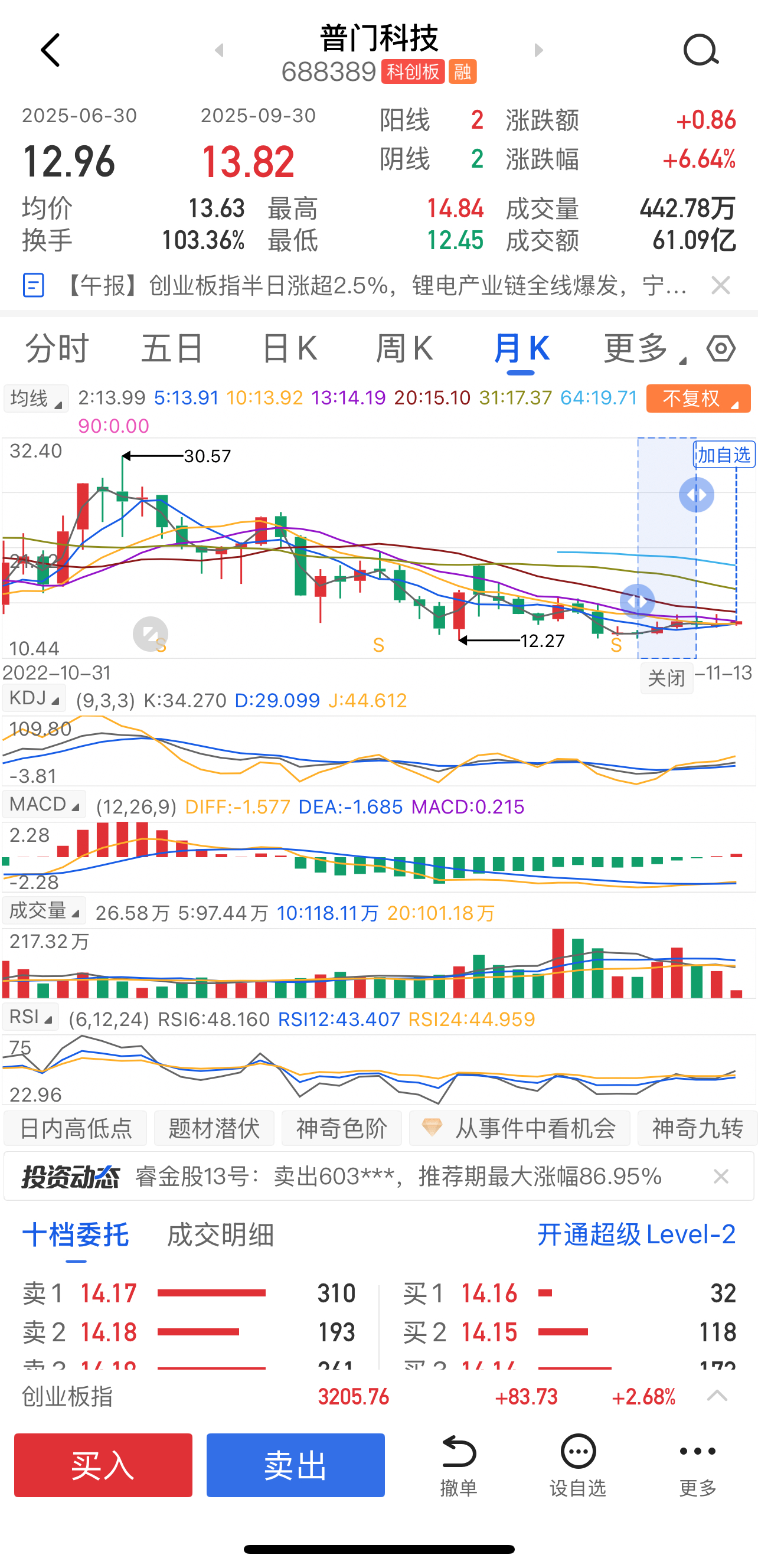 6-9月 偏门科技 最高价14.84元、最低价12,45元、换手率103.36%。平均成本13.63元。社保基金 牛市下莸微利!