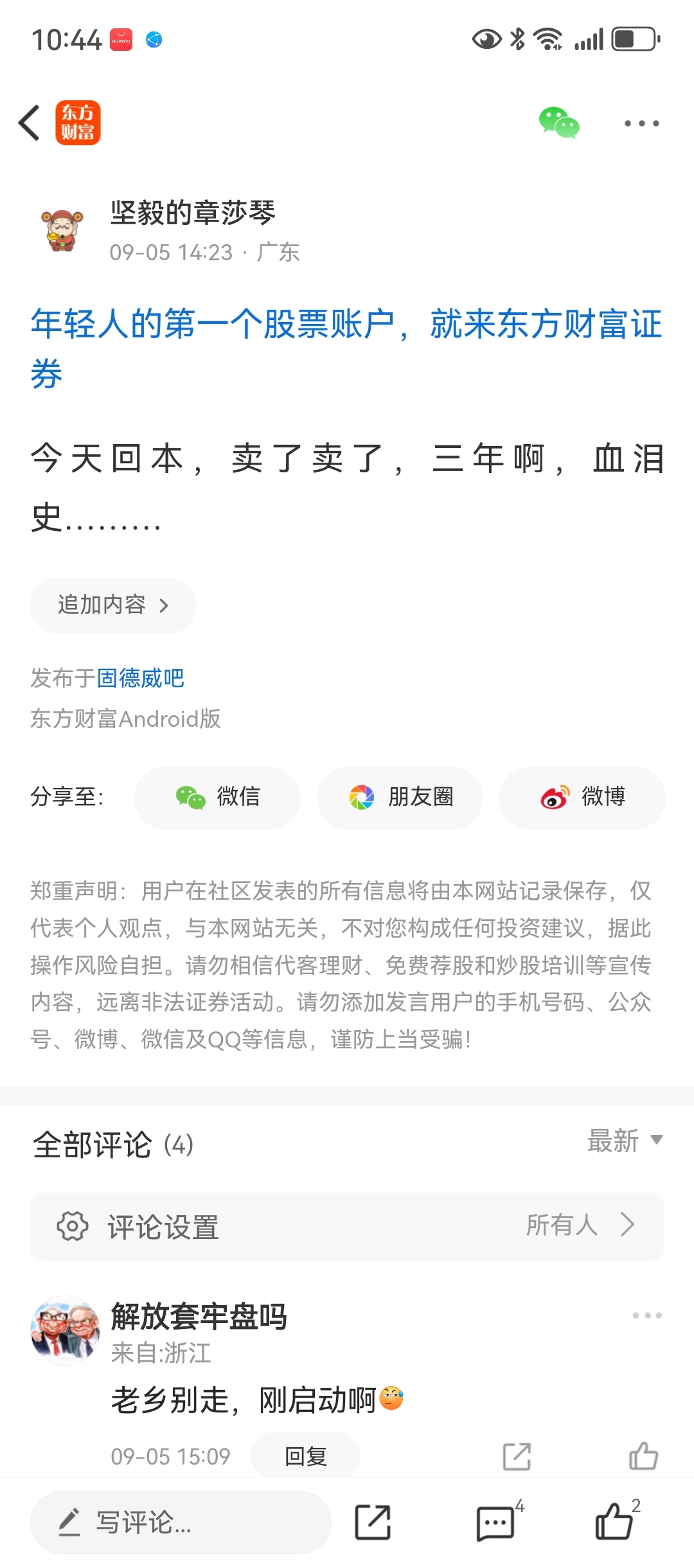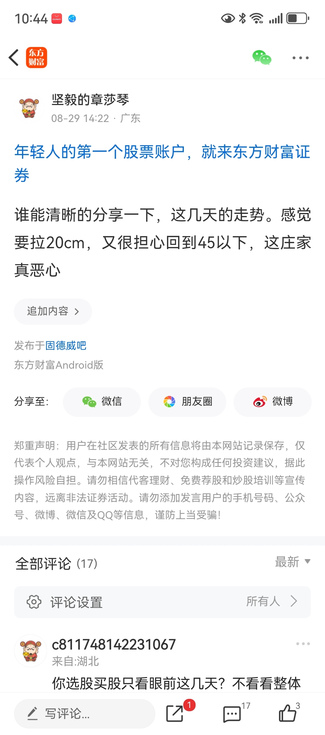 温馨提示: 1.根据《证券法》规定,禁止编造、传播虚假信息或者误导性信息,扰乱证券市场;2.用户在本社区发表的所有资料、言论等仅代表个人观点,与本网站立场无关,不对您构成任何投资建议。用户应基于自己的独立判断,自行决定证券投资并承担相应风险。《东方财富社区管理规定》