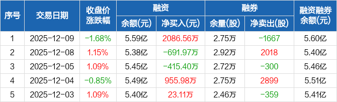 固德威:融资净买入2086.56万元,融资余额5.59亿元(12-09)