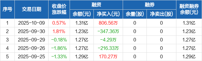 钜泉科技:融资净买入806.56万元,融资余额1.31亿元(10-09)