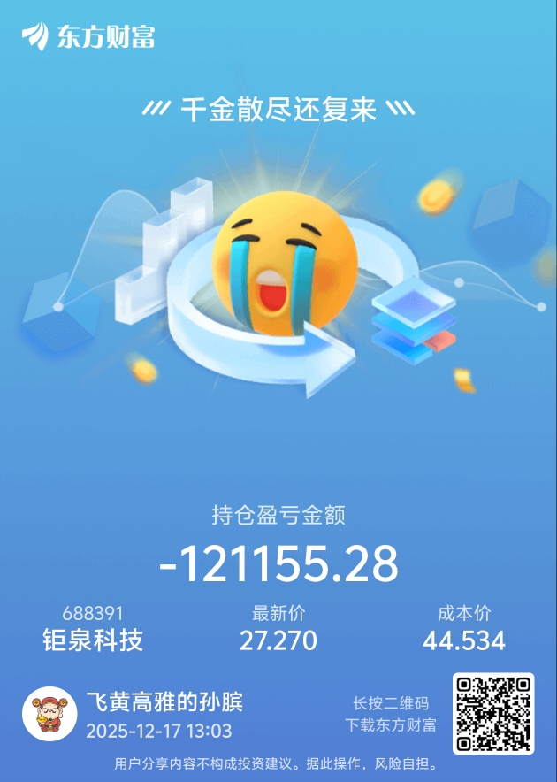 温馨提示: 1.根据《证券法》规定,禁止编造、传播虚假信息或者误导性信息,扰乱证券市场;2.用户在本社区发表的所有资料、言论等仅代表个人观点,与本网站立场无关,不对您构成任何投资建议。用户应基于自己的独立判断,自行决定证券投资并承担相应风险。《东方财富社区管理规定》