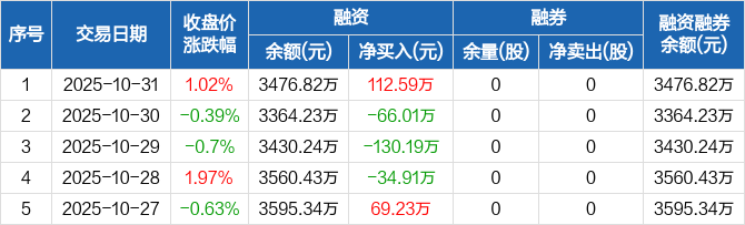 正弦电气:融资净买入112.59万元,融资余额3476.82万元(10-31)