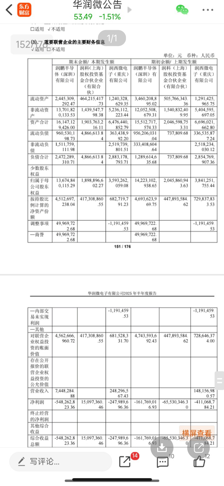 $华润微(SH688396)$ 联营企业-重庆分公司亏损减半,四季度要盈利了。深圳分公司还不知道什么时候盈利,如果慢牛市持续到明年一季度,预计能看到业绩爆发增长