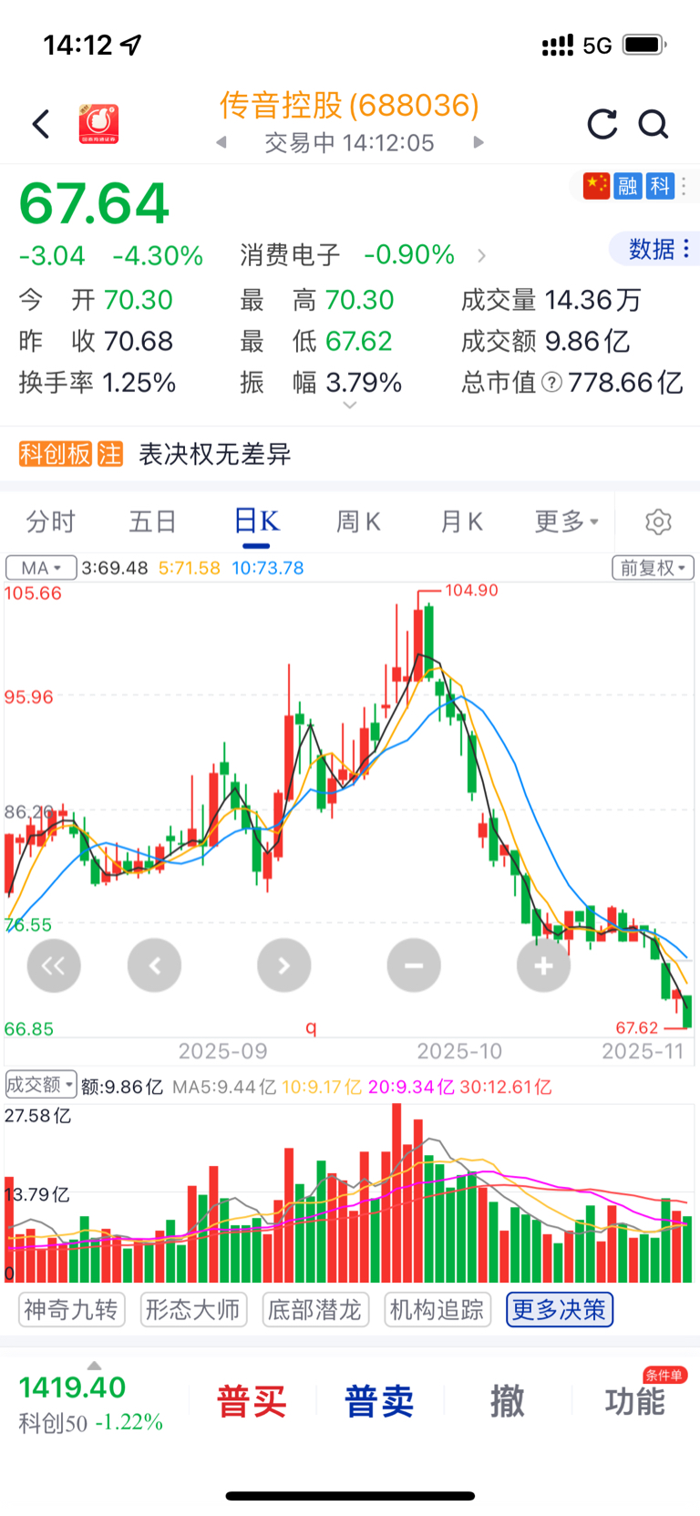 下跌不言底、看看这只票同样科创版,市盈率才20多点、快腰斩了吧,所以要敬畏市场,