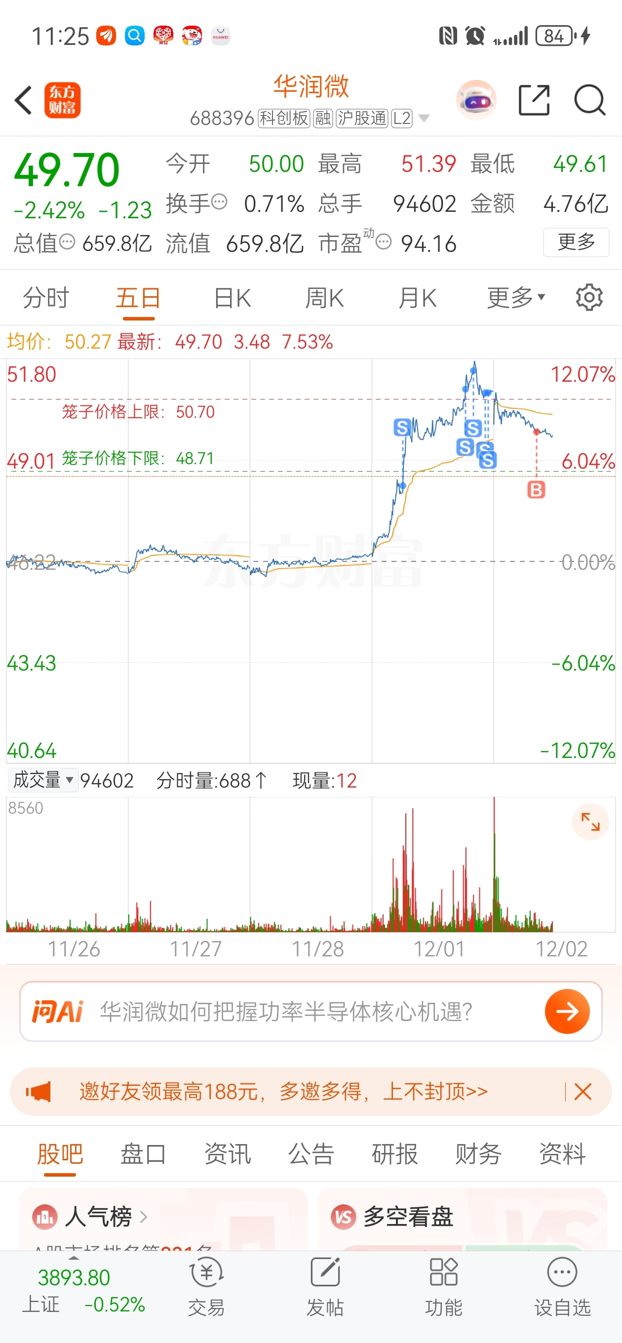 $华润微(SH688396)$ 昨天卖华润买航天,今天卖航天买华润