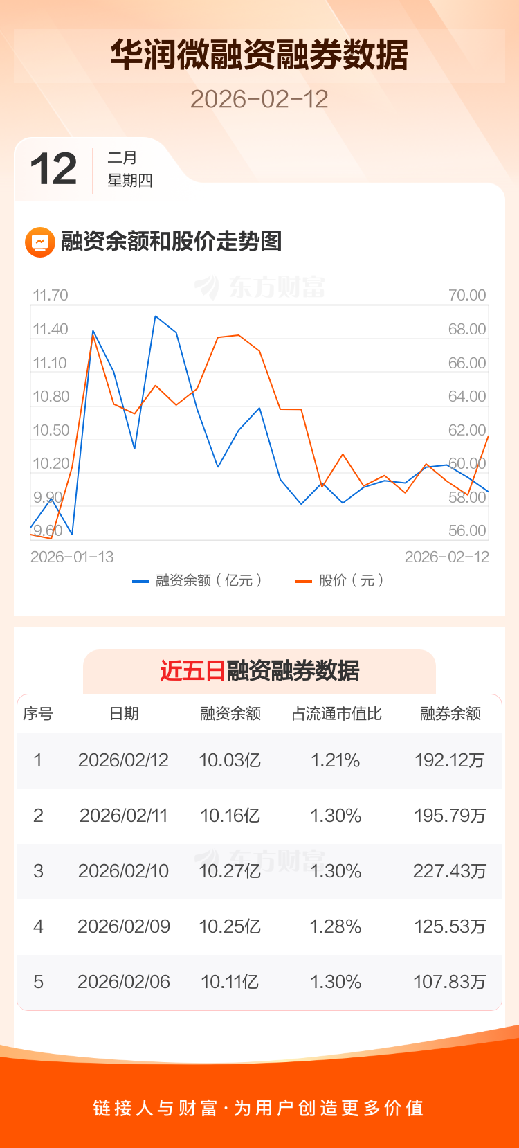 交易所最新数据显示,华润微于2026年2月12日获融资买入9248.78万元,融资偿还1.06亿元,当日融资净偿还1370.53万元。目前,该股融资余额10.03亿,占流通市值比例为1.21%。