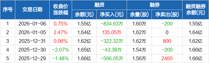 赛特新材:融资净偿还834.63万元,融资余额1.55亿元(01-06)