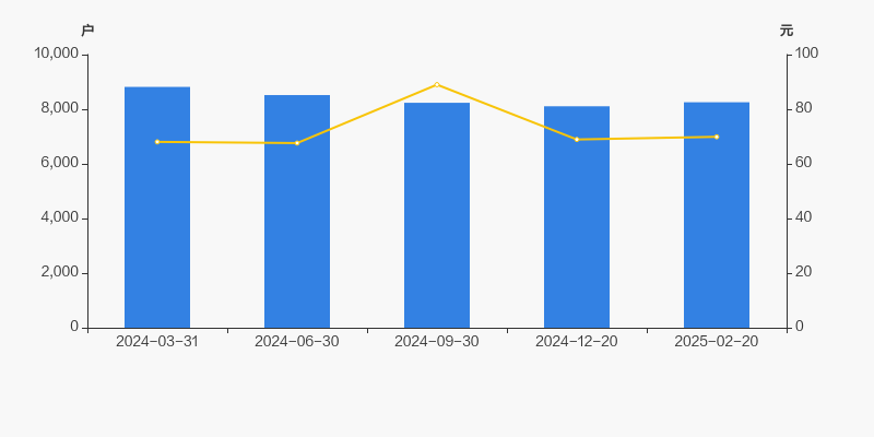截至2025年2月20日,公司最新总股本为5667.01万股,且均为流通股。户均持有流通股数量由上期的6989股下降至6864股,户均流通市值47.99万元。
